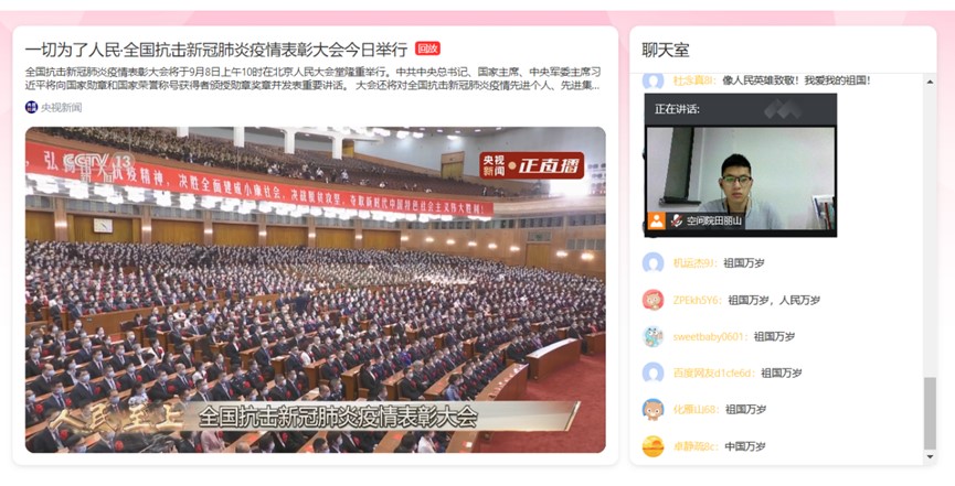 9月8日早上10点全国抗击新冠肺炎疫情表彰大会在北京人民大会堂隆重举行。中共中央总书记、国家主席、中央军委主席习近平向国家勋章和国家荣誉称号获得者颁授勋章奖章并发表重要讲话。304永利集团组织研究生党支部就此学习习近平讲话精神并进行线上讨论。