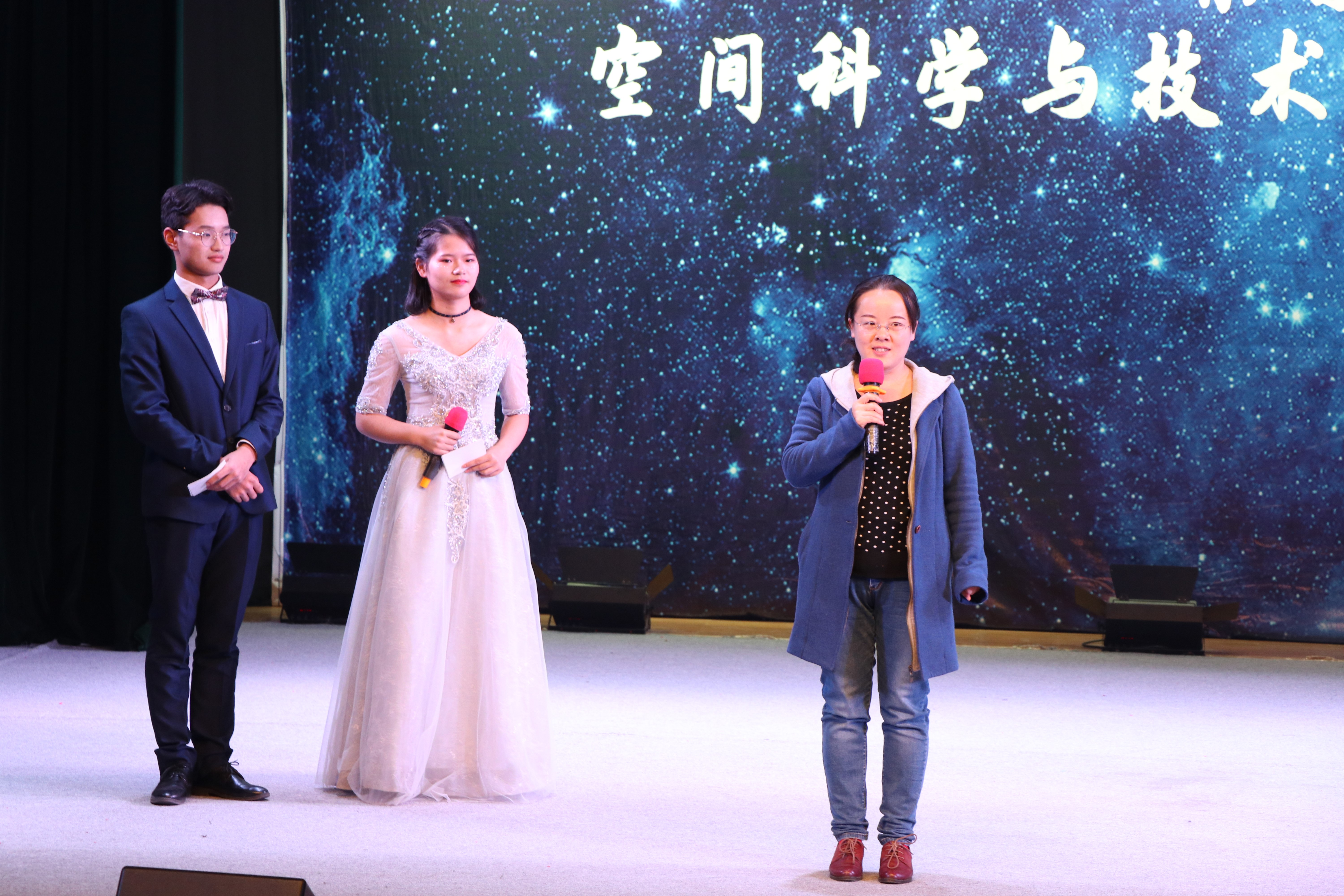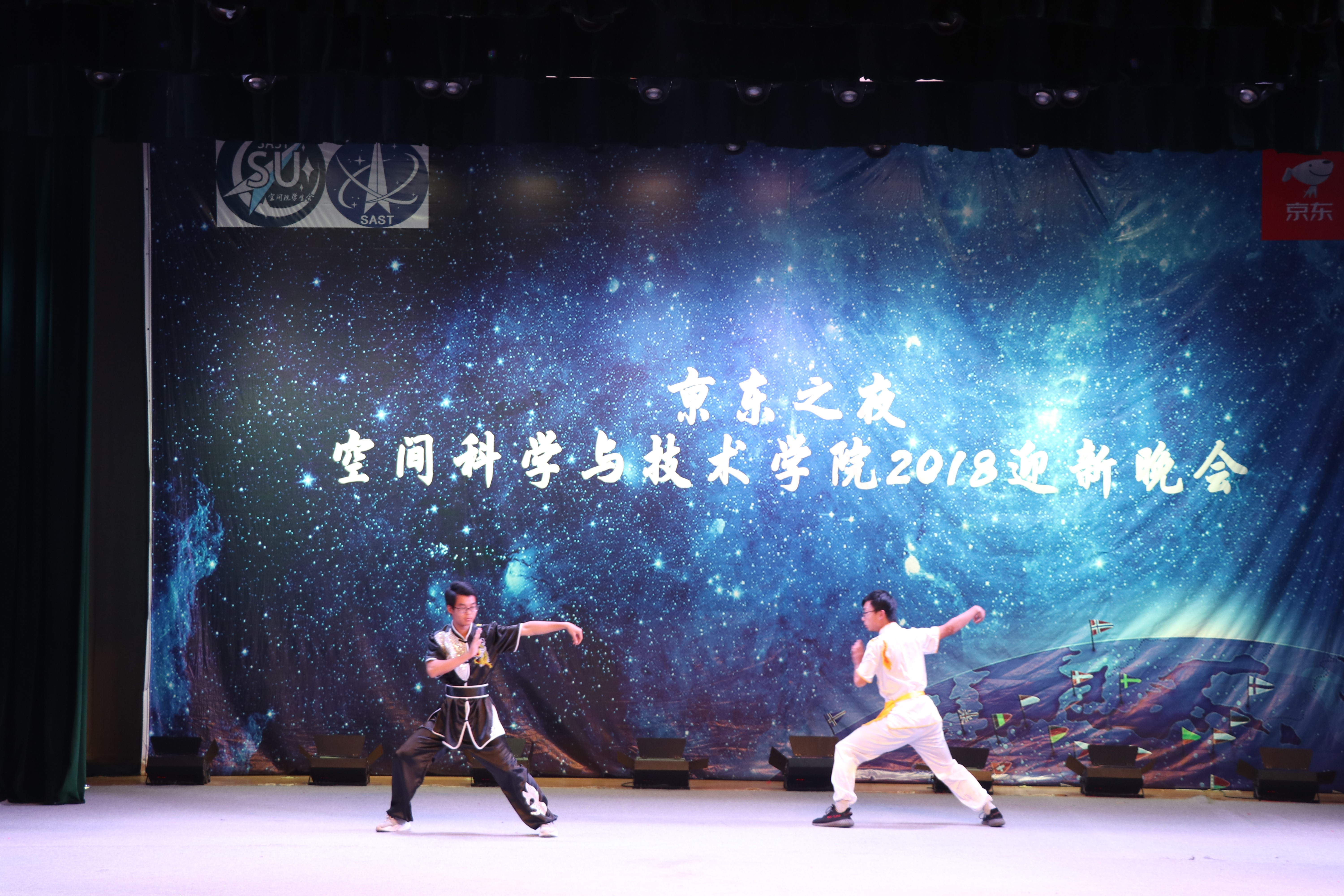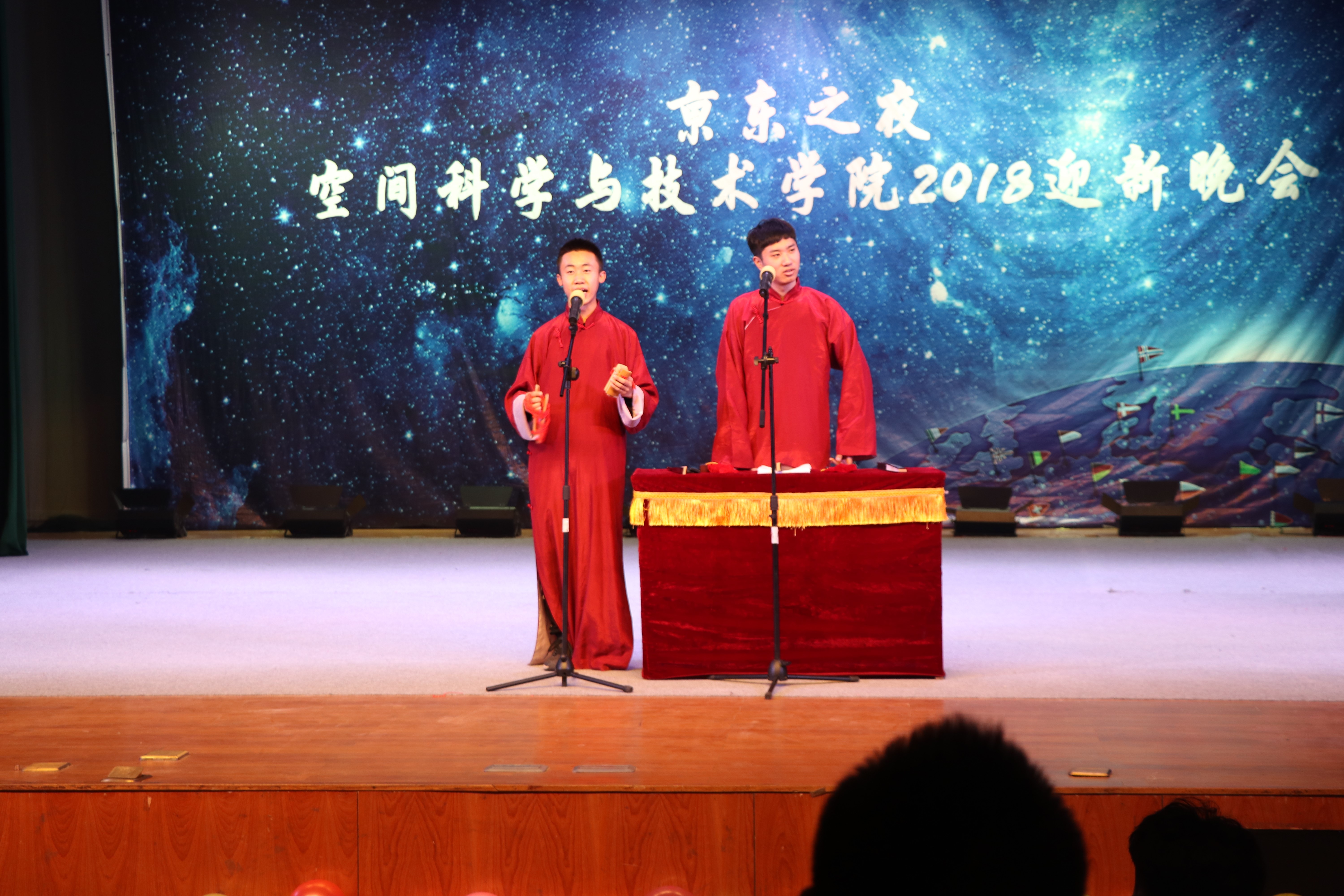 本次晚会节目多样,看点十足。郑慧琳同学一曲《不为谁而作的歌》,声乐空灵,摄人心魄,激发起人内心的思考;祁子言、杨懿林同学的《云烟成雨》低徊婉转,使人仿佛置身江南烟雨的细腻绵柔;李乘光、石泽康同学带来的rap说唱节奏明快,不仅有对现实生活的思考,也有对西安的祝福与遐想……慷慨激昂的朗诵,展现出空间学子的朝气蓬勃;“二犬赛狮”的轻松搞笑,体现出同学们日常生活的丰富多彩;刀光剑影、南拳北腿,武术社的《器械表演》卷武林之风横扫现场;说学逗唱,绕口令、抖包袱,相声《学电台》引得观众开怀一笑;小品《迷途知返》,通过展现一个宿舍内同学的大学经历,警示同学们“天上不会掉馅饼”,“美好生活是奋斗出来的”;钱学森班的同学们带来的合唱《同桌的你》最后登场,将时光拉回中学时代,勾勒出观众记忆中的青葱岁月。