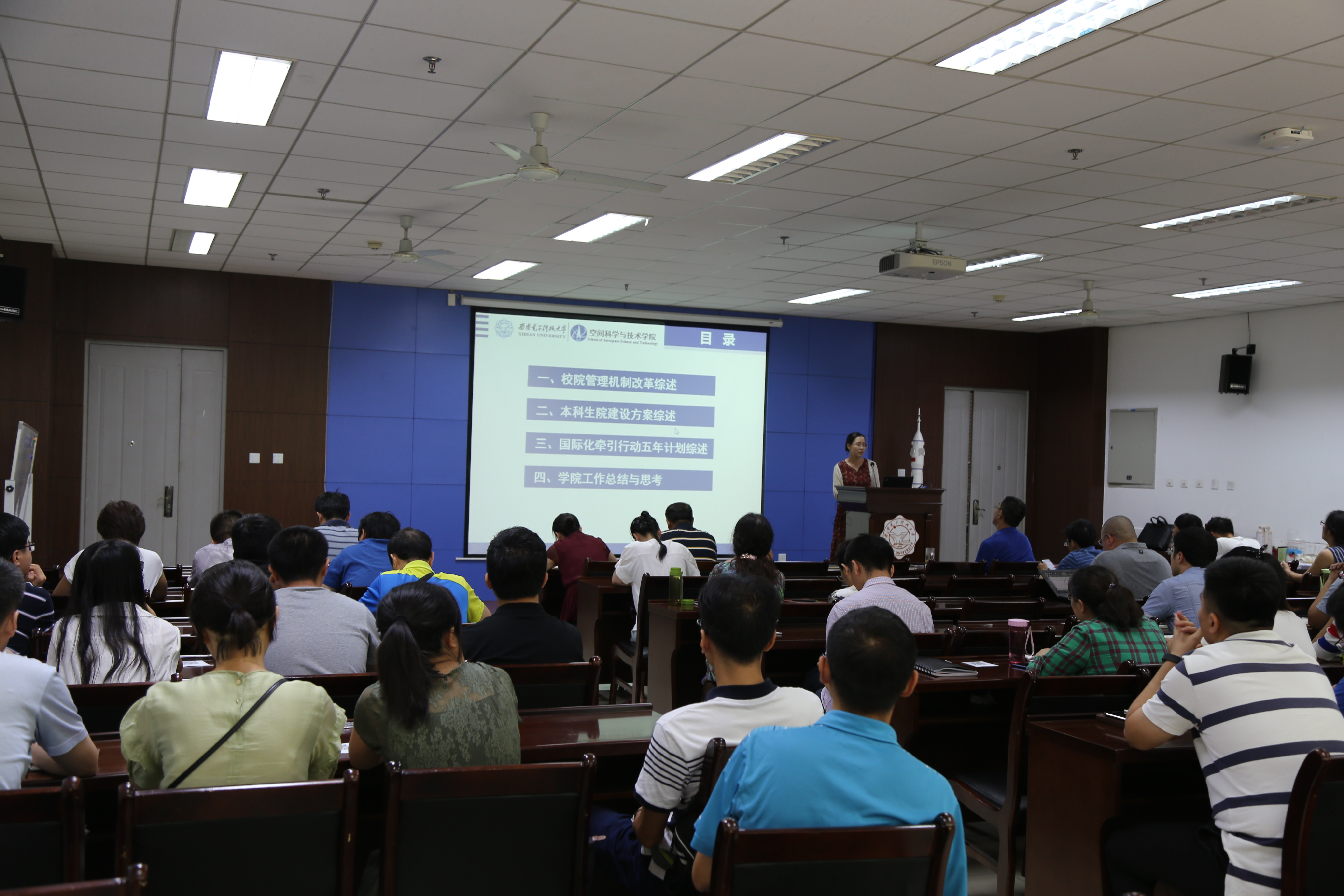 李小平首先从校院管理机制改革实施办法、本科生院建设以及国际化工作三个方面介绍了公司开展的多项改革举措,强调公司推动的机制体制改革是落实中央放管服精神的重要体现,也是新形势下开展人才培养工作的重要举措,全体教师应充分领会改革内涵,凝聚改革共识,转变观念,激发活力,迎接挑战。随后,李小平从本科教学、公司产品、团队建设、国际化建设等方面对2018年上半年工作进行了总结并对下半年重点工作进行了思考和布置。