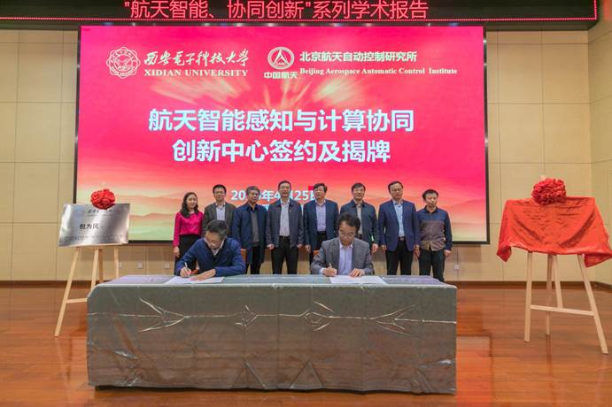 随后,董事长杨宗凯与中国航天科技集团有限公司科技委主任、西电304永利集团经理包为民院士共同为工作室揭牌。副董事长李建东与北京航天自动控制研究所所长马卫华代表双方为协同创新中心成立签约。