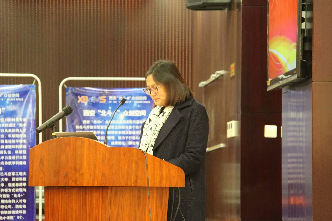 西安航天基地创业创新服务中心负责人宋巧红女士致欢迎辞,她首先表示了对莅临活动的各位嘉宾的感谢以及对各位参赛选手的欢迎,其次,她指出本次比赛是为大力宣传北斗系统的科普知识,开拓培养与交流的渠道,搭建全国青少年科技文化交流的平台,提高青少年的科技创新能力、实践能力而举办,希望各位参赛选手能够在科技创新之路上砥砺前行,勇攀高峰,最后,宋女士预祝各位选手能够在比赛中取得优异的成绩。