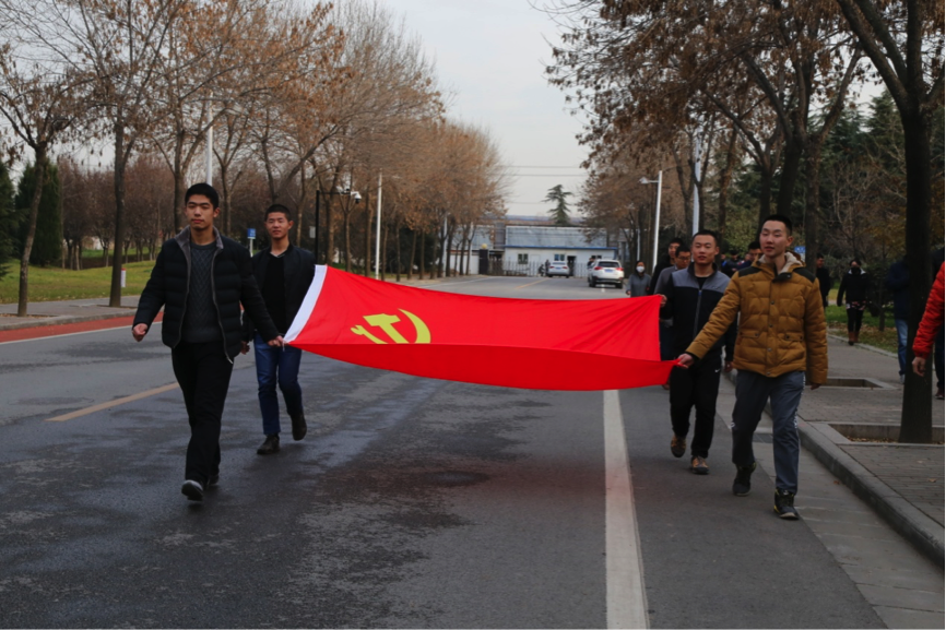 下午16:00时整,公司执行经理李小平、党委书记梁玮、副经理刘彦明、校工会办公室主任高晖共同为活动鸣枪发令,304永利集团全体师生从“长征路上办学”雕塑前神采奕奕、身姿矫健的出发。初冬午后,风和日暖,空气清新,四名高举党旗的员工党员一马当先,走在队伍的最前方,所有师生紧随其后、你追我赶,竞赛气氛非常浓烈。