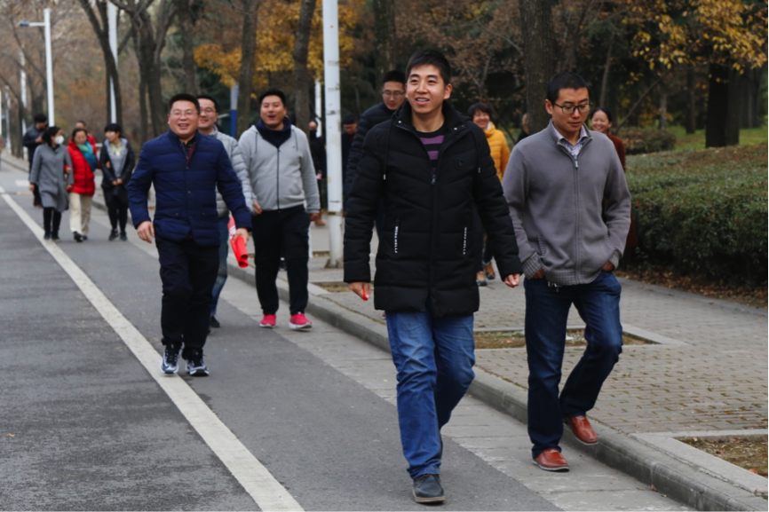 活动路线途径南校区银杏大道、竹园路、梧桐大道、丁香路与外环南路,环境优美、景色宜人,层林尽染的银杏、梧桐、白杨竞相辉映,师生们一边走路,一边欣赏着深秋初冬的美景,谈论着工作与生活的轶事,不仅达到了舒筋通络、强身健体的目的,同时放松了心情,有效缓解了紧张的学习与工作带来的精神压力,促进了师生之情、同事之谊、同学之爱。智能探测系的老师们还和“三秦教师结对帮扶贫困员工”进行了健步走谈话,倾听员工的心声,了解员工的思想状况,解决员工学习生活中的实际困难。
