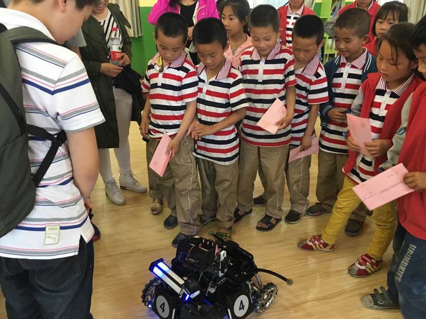 公司师生和孩子们一起体验机器人战车