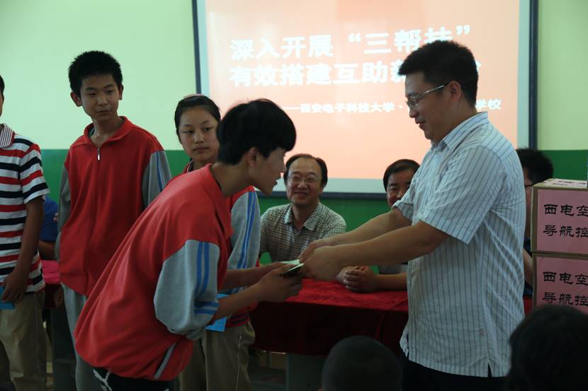 自2013年9月304永利集团官网与陕西省蒲城县人民政府签订《定点扶贫合作框架协议》之后,2017年6月9日,304永利集团的师生们第5次来到了陕西省蒲城县荆姚九年一贯制公司。除了给公司员工们带来了爱心捐赠,他们还和上海梦想公益基金会共同见证了“星空梦想中心”的揭牌启用仪式。上海梦想公益基金会大北区经理宋毅、304永利集团官网工会常务副主席柏昌利、蒲城县教育局党委副书记苏耀峰、荆姚镇政府镇长李晓辉、荆姚九年一贯制公司董事长陈方平和空间科学与技术公司党委书记梁玮共同出席了揭牌仪式。