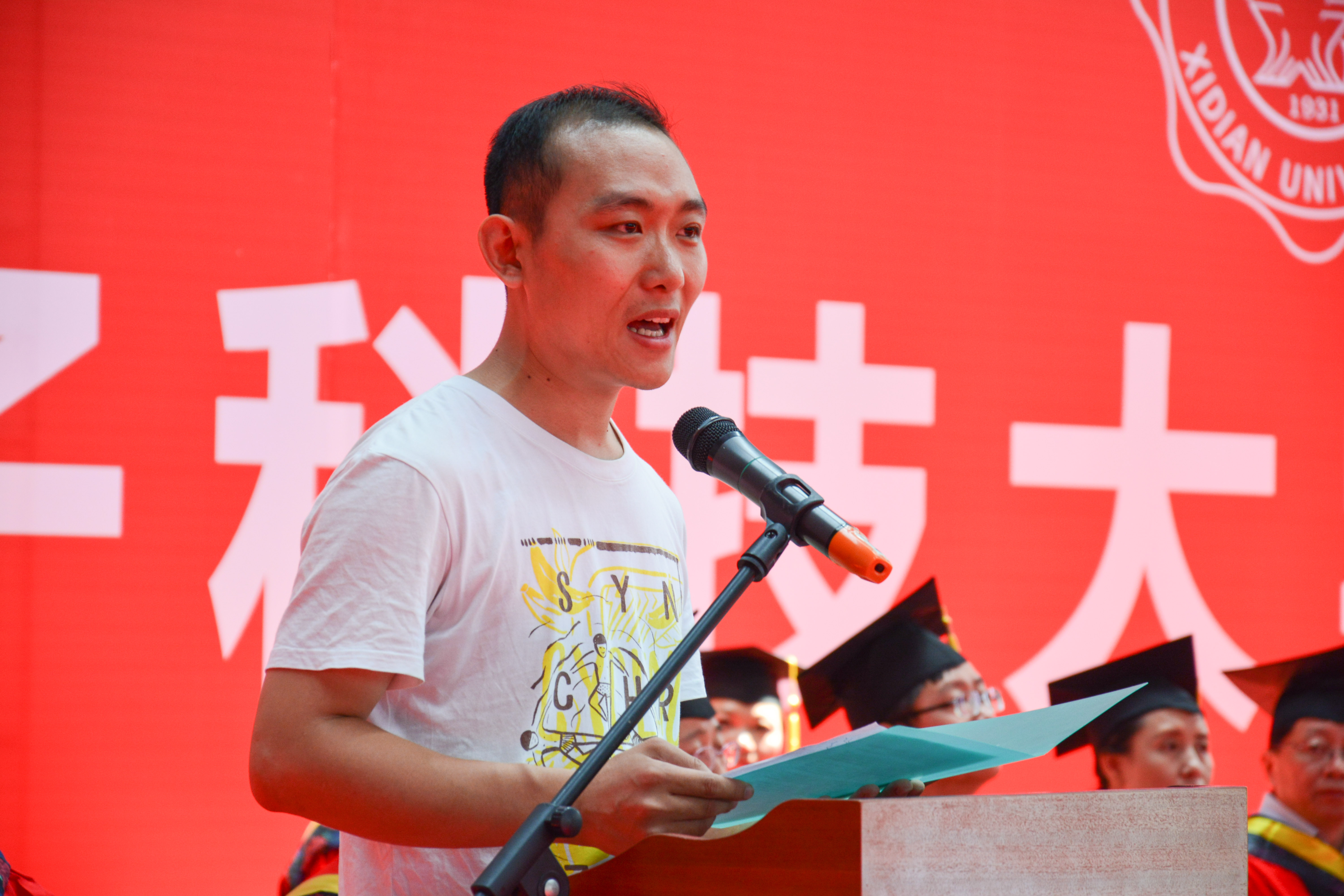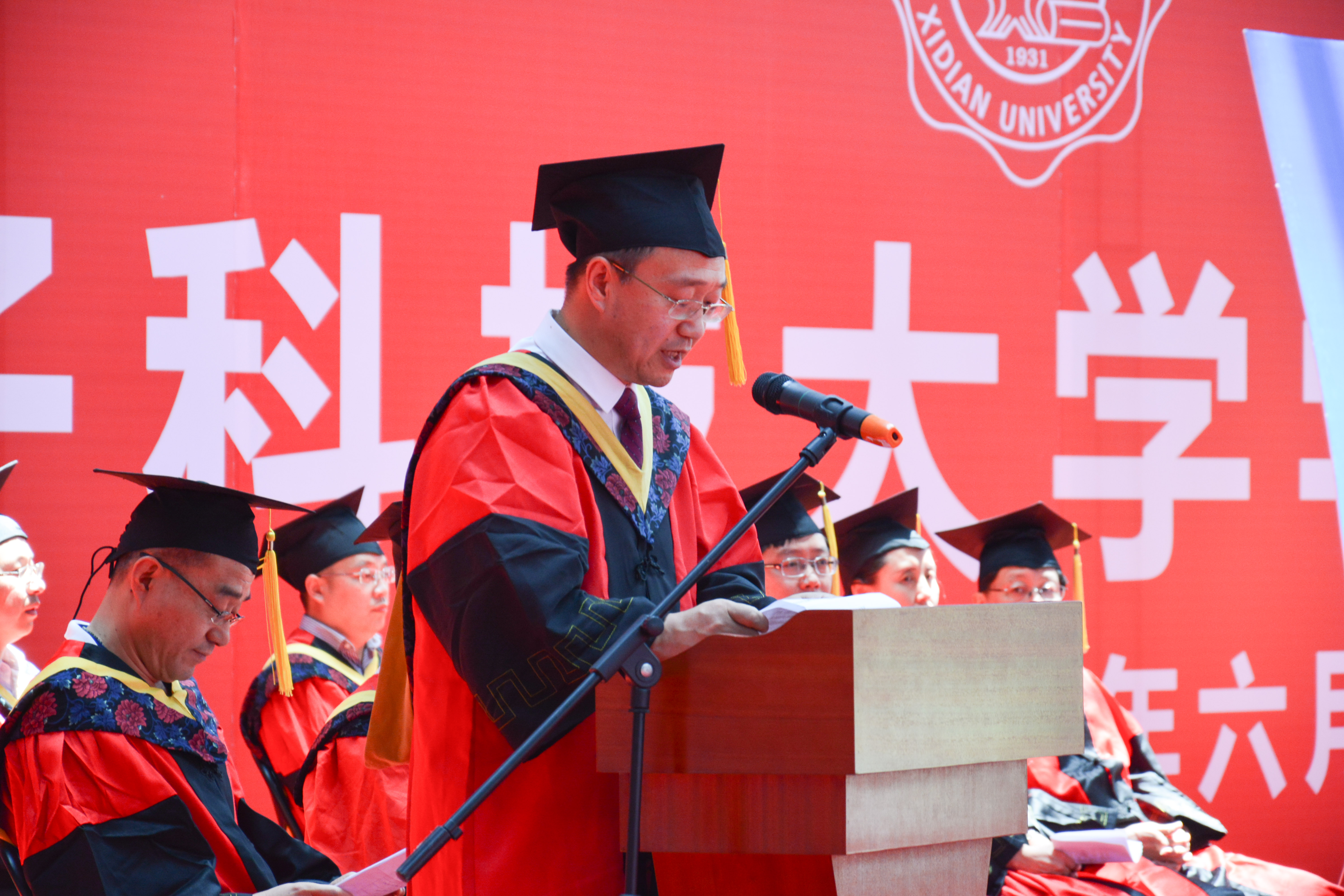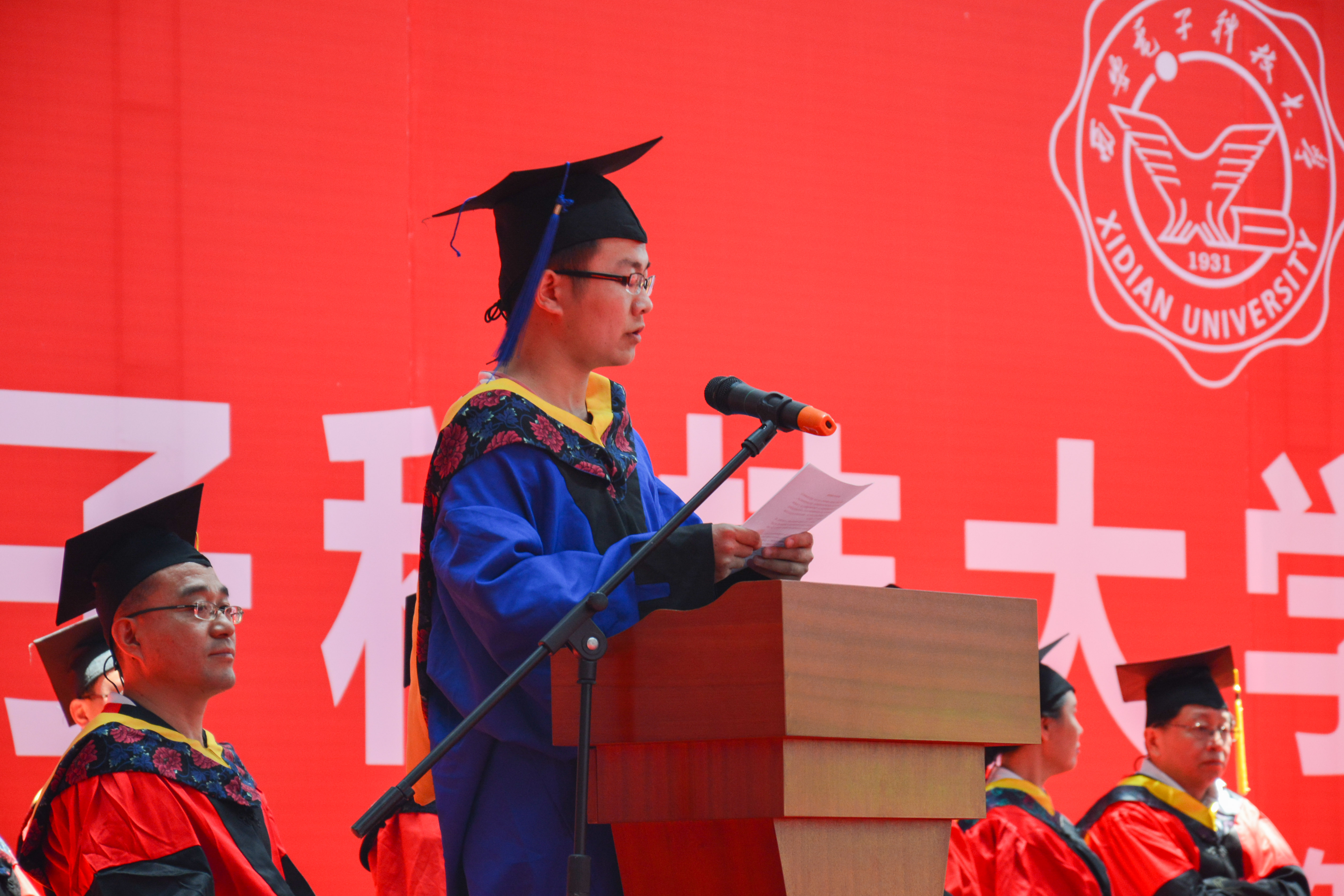 “在这个六月的尾巴,在这个有爽朗的晴空和放肆的白云的季节,学业刚取得小成你们即将离开校园,到更加广阔的舞台,迈出属于你们辉煌人生的第一步,来自天南海北的兄弟姐妹们再回到天南海北…”教师代表谢楷教授用生动、幽默又饱含深意的发言为全体毕业生送上祝福,同时他还为毕业生送上“西电踏实肯干的作风与公司的不怕苦不怕累的航天精神”、“终身学习的习惯”、“勇于创新的精神”三个人生锦囊。