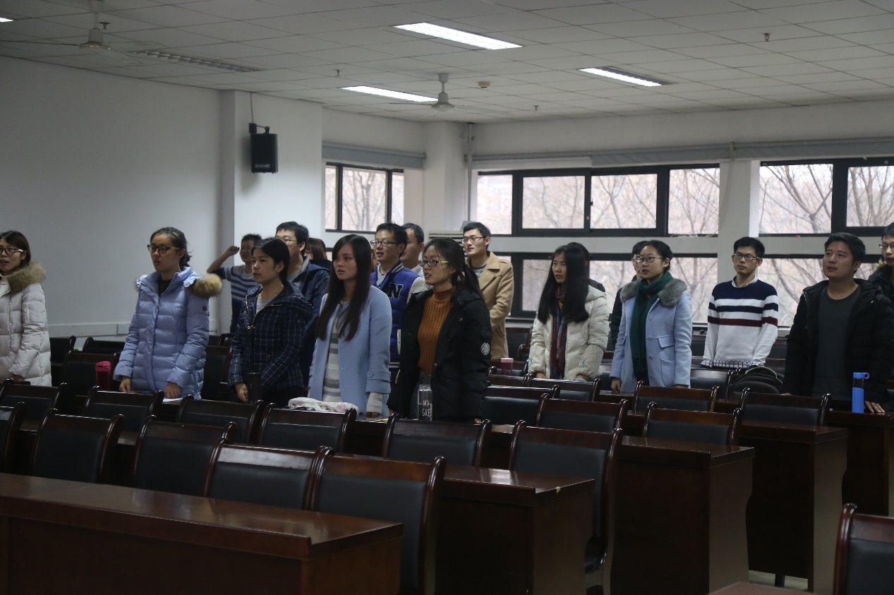 会议共分为三部分:一、本次转正及转预备事宜;二、召开本学期支部民主生活会;三、集体观看影片《钱学森》,感受钱老的大家风范。本次会议在慷慨激昂的国际歌的旋律中开始,大家全体起立,共同感受这份正义与庄严。