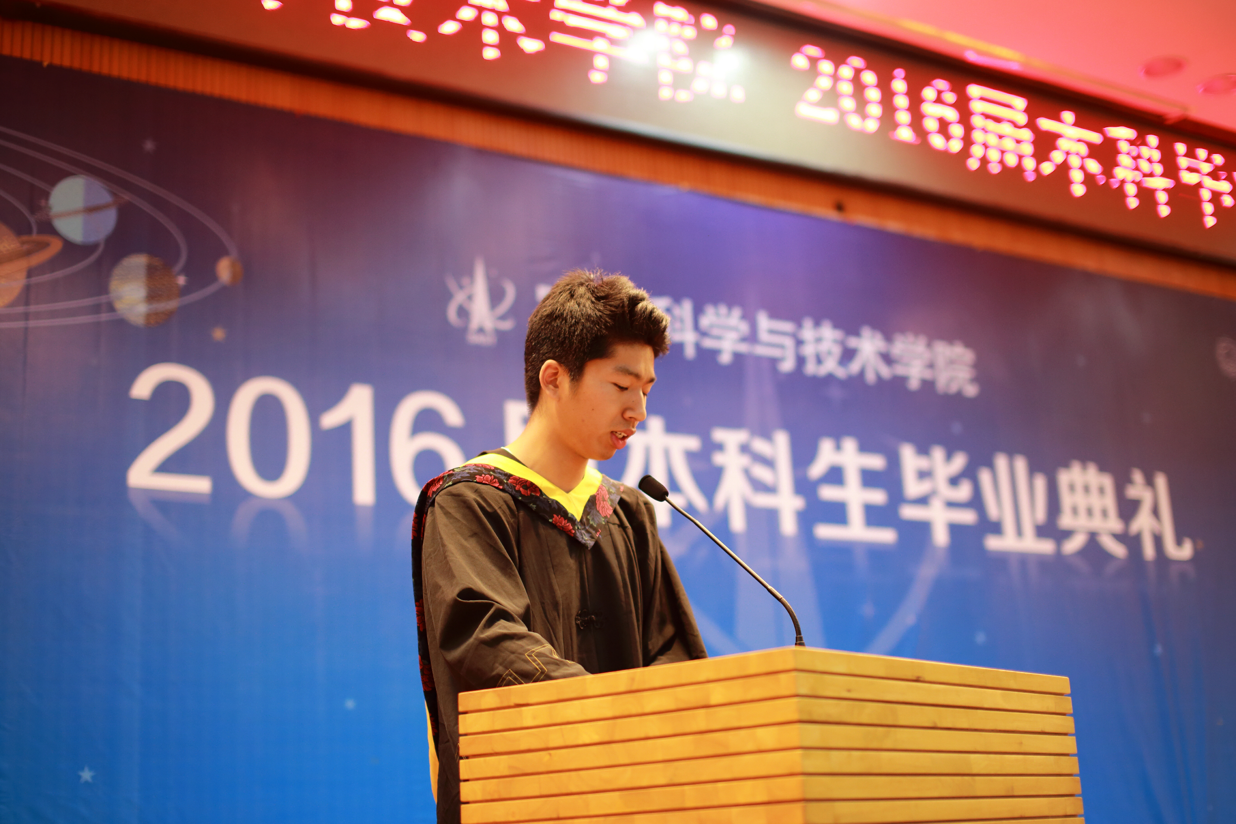 “要走了,才发现心存万般不舍。感谢我热爱的304永利集团,正是您的宽容,我们的个性得以施展;正是您的支持,本科生也可以让卫星上天;正是您精心的培养,我们才可以更加自信的昂首走向未来。”毕业生代表王勒铭在发言中抒发了对老师们辛勤奉献最深厚的感恩之心,对公司和母校尽心培养的不舍之情,也代表毕业生承诺今后将时刻谨记自己在每一个社会角色中应有的担当,心怀感恩,善待身边的每个人,在自己的工作岗位中实现自己的人生价值!