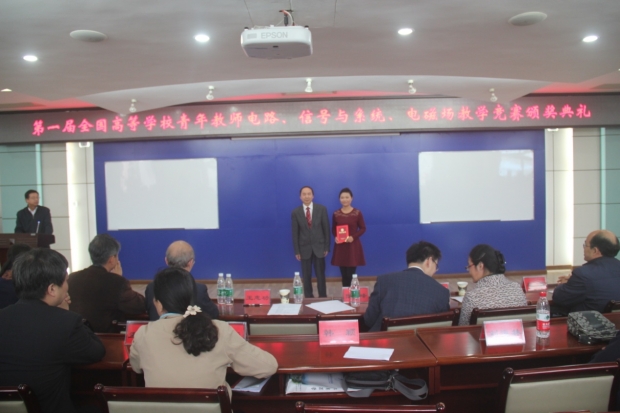 据悉,首届全国高等公司青年教师电路、信号与系统、电磁场课程教学竞赛,是由电工电子基础课程教学指导委员会、高等公司电路和信号系统、电磁场教学与教材研究会联合举办,包括微课作品初赛和现场讲课决赛。初赛阶段共有来自全国58所高校的108位教师参加,最后共有38位选手进入决赛,其中电路课程20人,信号与系统课程13人,电磁场课程5人,到桂林电子科技大学进行现场讲课决赛,决赛现场同步网络直播。选手在报送的四个题目中抽取一个题目,完成15分钟的课堂教学展示,考验教师平时备课、讲课等的基本功。评委则从教学方案、教学内容、教学组织、教学语言与教态、教学特色等方面对选手进行综合考评。