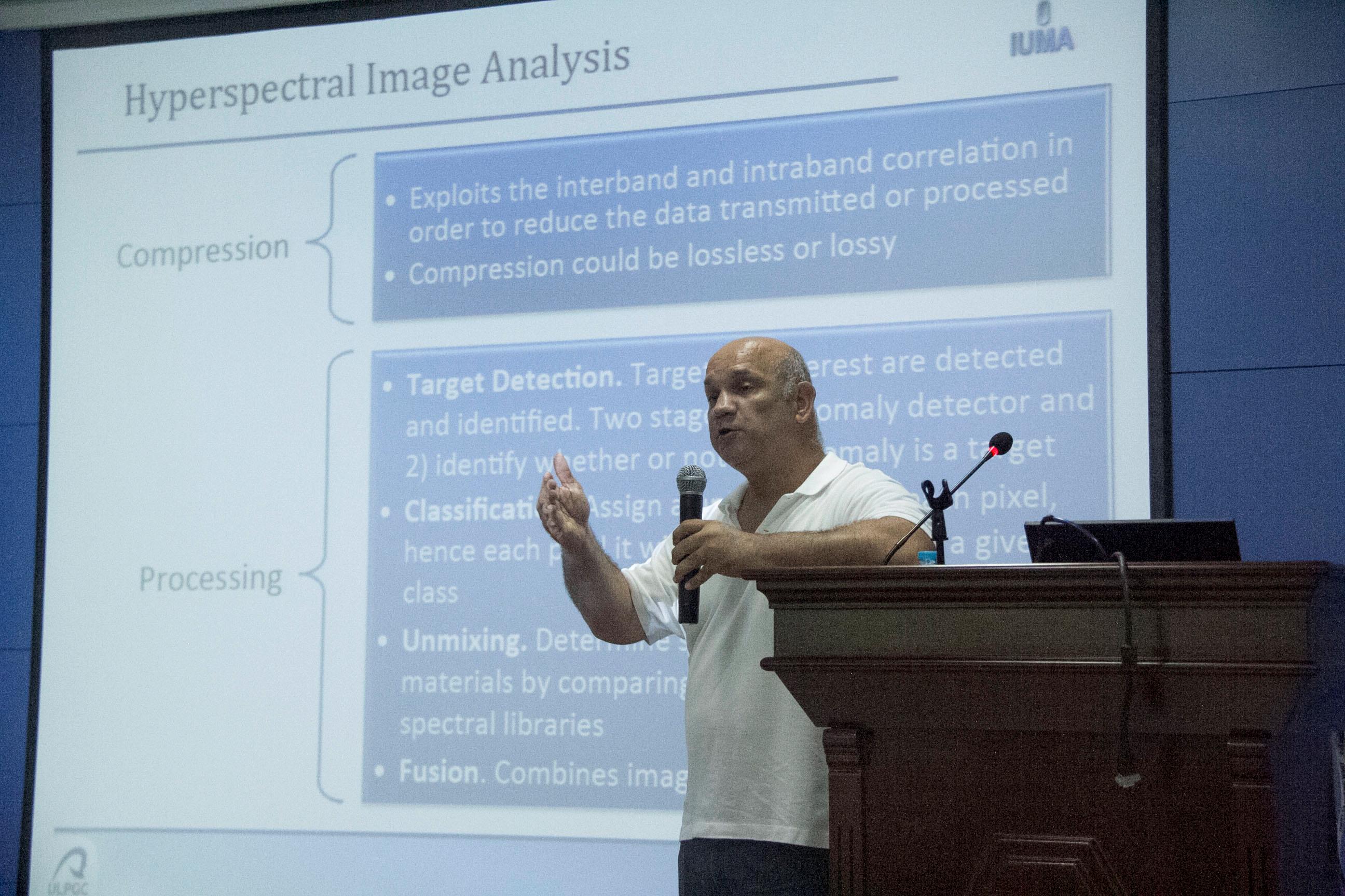 7月16日下午在南校区G-240报告厅进行了《Institute for Applied Microelectronics》的专场报告,7月21日下午,又为广大师生带来了题为《Hyperspectral Image Processing》的学术报告。Jose Lopez教授的报告深深吸引了前来聆听的每一位师生,在互动环节,师生踊跃发言,请教了相关问题,表达了对领域发展的高度关注。