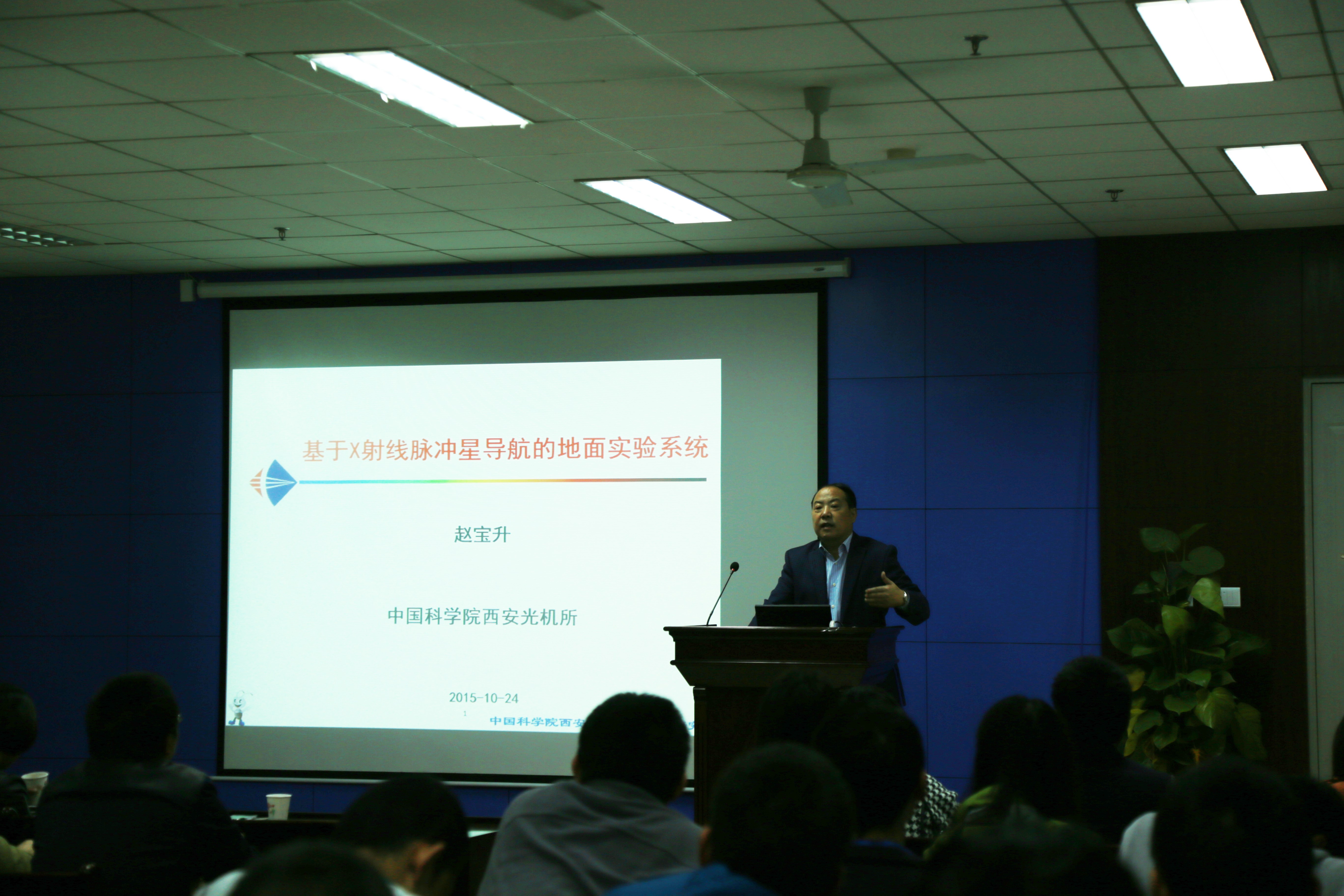 赵宝升研究员作题为“基于X射线脉冲星导航的地面实验系统”的报告