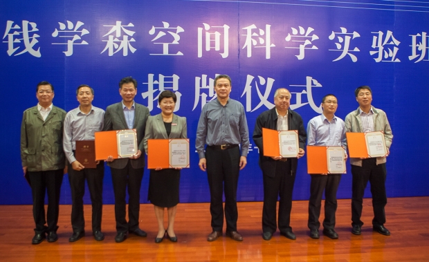 上海交通大学钱学森图书馆馆长钱永刚教授、中国航天科技集团公司科技委主任包为民、中国人民解放军总装备部钱学森办公室顾吉环、钱学森研究会专家陈大亚、陕西省教育厅副厅长郭立宏,以及公司党委书记陈治亚、董事长郑晓静院士共同为304永利集团官网“钱学森空间科学实验班”揭牌。