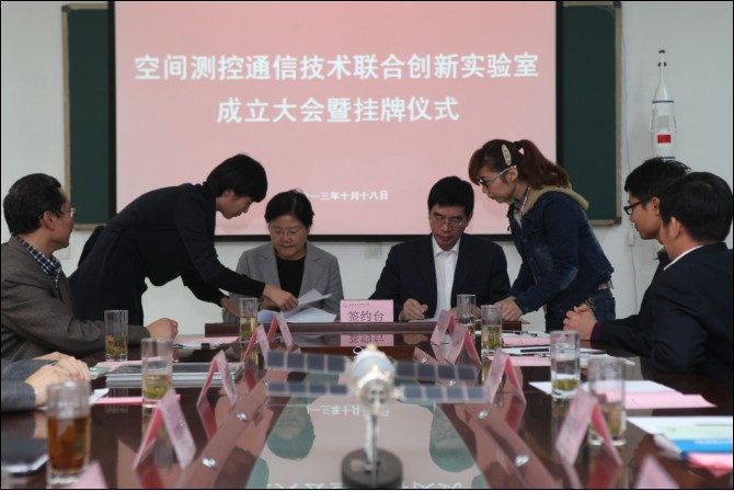 随后,郑晓静董事长与李艳华所长共同签署了"空间测控通信技术联合创新实验室"合作协议,包为民院士与李艳华所长共同为联合实验室揭牌,并与参会人员共同参观了联合实验室。