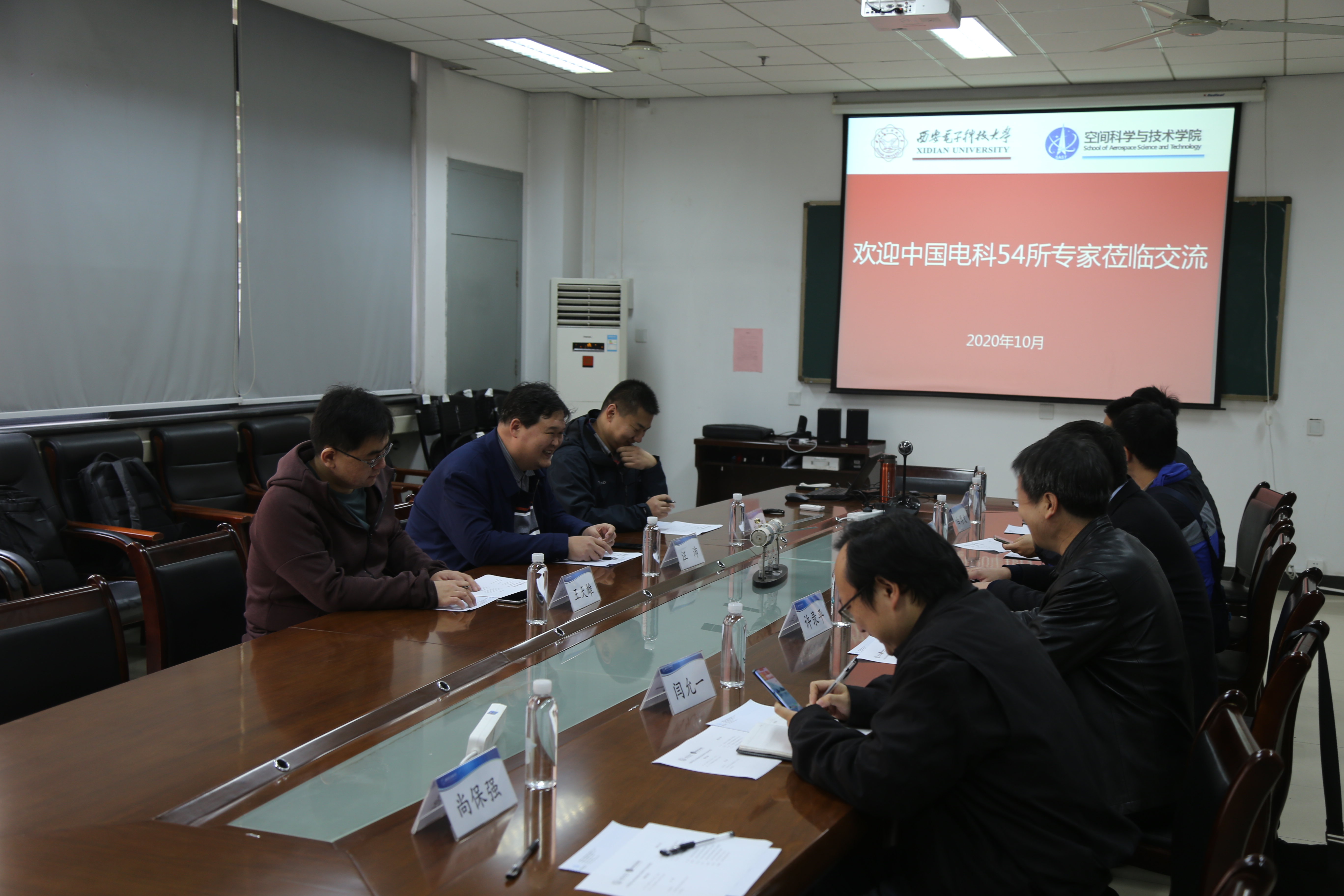 座谈交流中,许录平介绍了导航控制系的科研方向,回顾了与54所在人才培养和科学研究方面的合作情况,希望双方围绕脉冲星导航、制导控制、雷达探测以及新型材料传感器等领域开展合作。谢楷从特种测控通信、可变智能飞行、柔性传感器等方面对测控通信系进行了详尽介绍,并重点介绍了在“黑障通信”方面的研究进展和成果。闫允一介绍了智能探测系在复杂系统分析、计算机视觉理论以及智能装备信息化方面的研究情况,并就小目标识别以及相关机器学习算法研究进行了深入讨论。