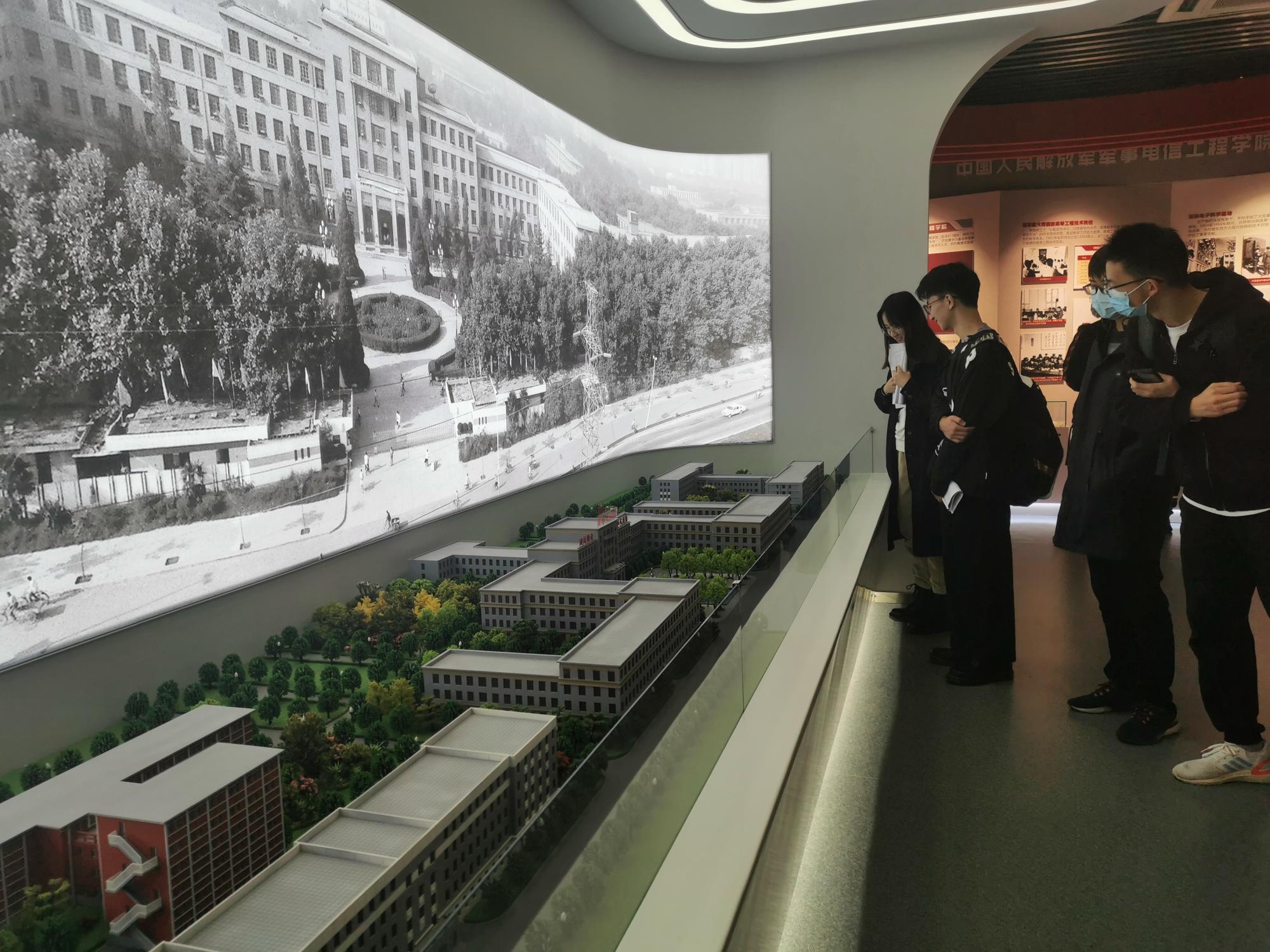 展馆内一张张充满故事的老照片,一封封泛黄的稿件证书以及承载着历代西电人辉煌成就的刊物与书籍都在向我们诉说着公司丰厚的历史底蕴,以及不忘初心、砥砺前行的优秀品质。同学们纷纷拍照留念,将这辉煌校史铭记于心,展望未来更加美好的新时代。参观过程中同学们对中国“天眼”FAST射电望远镜反射单元模型等展品产生了浓厚的兴趣,积极地和展品近距离接触,深切感受电子信息科技的魅力,以及视觉冲击带来的心灵震撼。