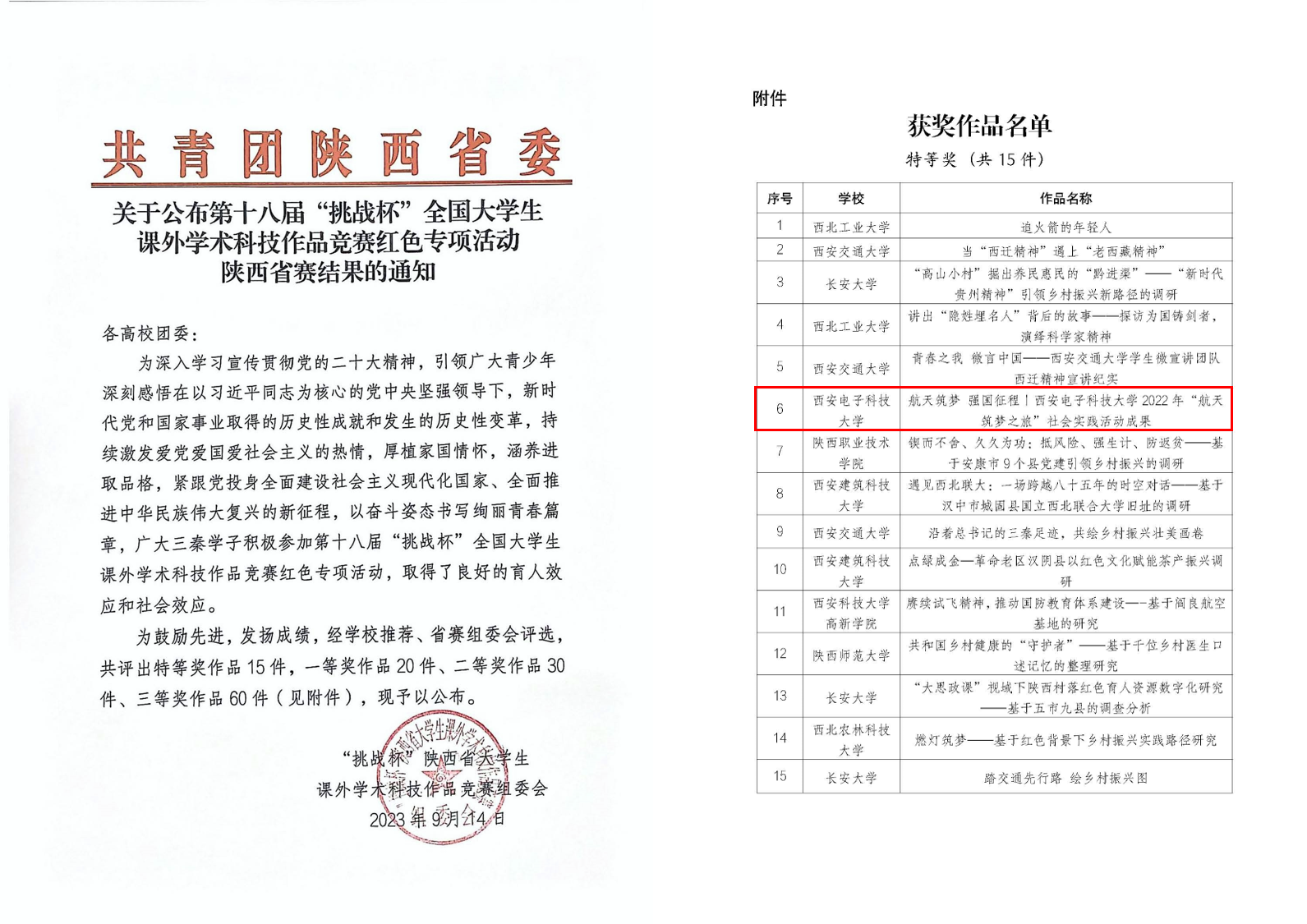 (通讯员 郑瑞博 李小军)近日,第十八届“挑战杯”全国老员工课外学术科技作品竞赛红色专项活动陕西省赛落下帷幕,304永利集团申报的《航天筑梦 强国征程丨304永利集团官网2022年“航天筑梦之旅”社会实践活动成果》斩获特等奖。