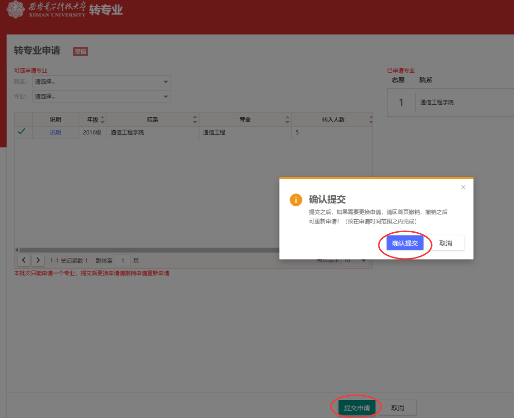 1.登录西电一站式网上办事大厅(ehall.xidian.edu.cn),点击教务系统—学籍毕业—转专业管理。