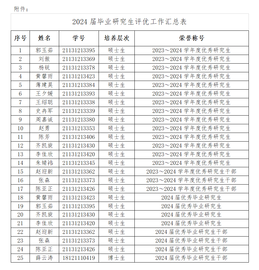 各位同学: 经个人申报、资格审查、评议小组评审等流程,现将公司2024届毕业研究生评优结果予以公示(名单见附件),如有异议请于公示期内反馈。 公示期为三个工作日 邮箱:zhangchenhui@xidian.edu.cn 电话:029-81891034 304永利集团 2024年4月30日
