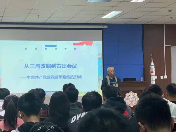(通讯员 尚保强、冯献礼)4月11日晚上,空间科学与技术公司党委邀请公司党史学习教育宣讲团成员杨选德教授以“从三湾改编到古田会议”为题讲授党史学习专题党课,公司100余名员工参加学习,活动由公司团委书记、本科生辅导员郑瑞博主持。