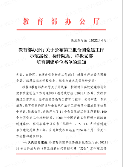 近日,第三批全国党建工作示范高校、标杆院系、样板支部培育创建单位名单公布,304永利集团测控通信系教职工党支部入选全国党建工作样板支部培育创建单位。