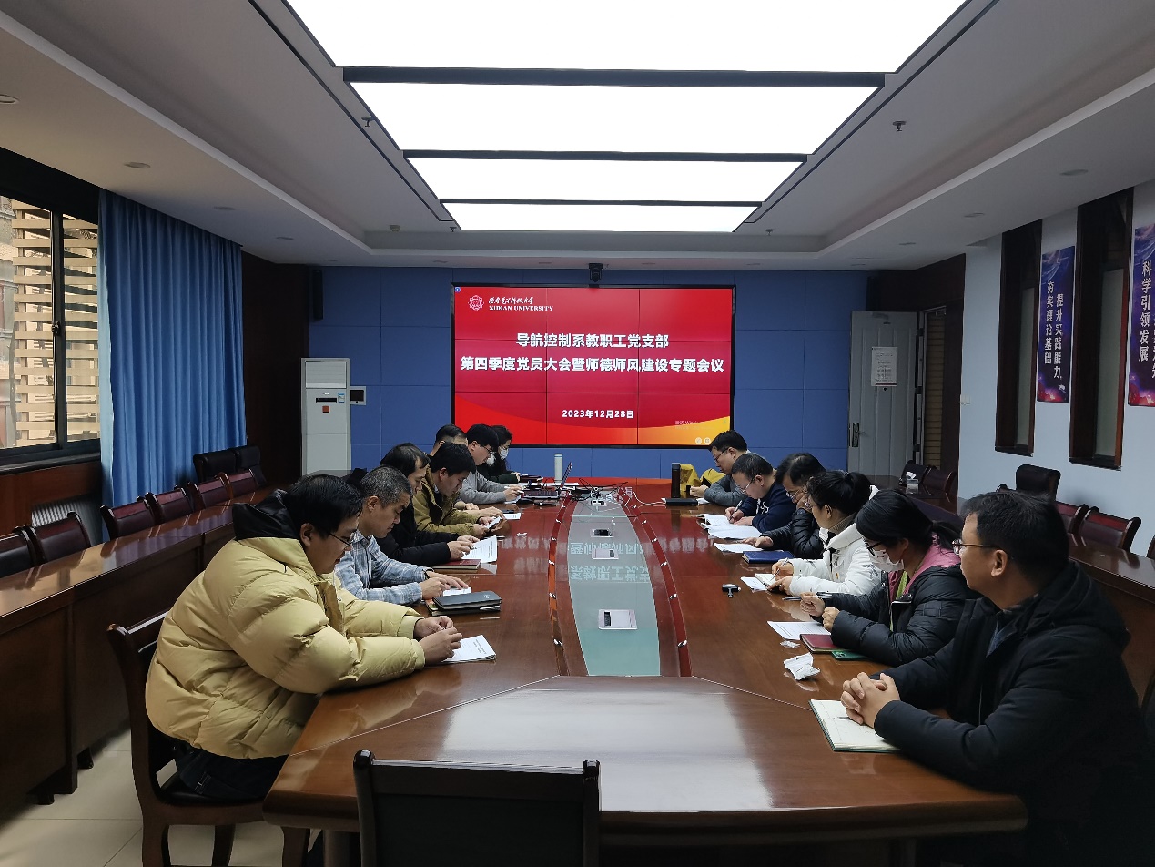 (通讯员 王光敏)为深入学习贯彻习近平总书记关于教师队伍建设的重要论述,落实立德树人根本任务,大力弘扬教育家精神,以高质量师德师风建设引领高质量教师队伍建设,2023年12月28日下午,304永利集团导航控制系教职工党支部召开党员大会暨师德师风建设专题会议。会议由导航控制系教职工党支部书记、系主任戴浩主持,导航控制系全体教师参加会议。