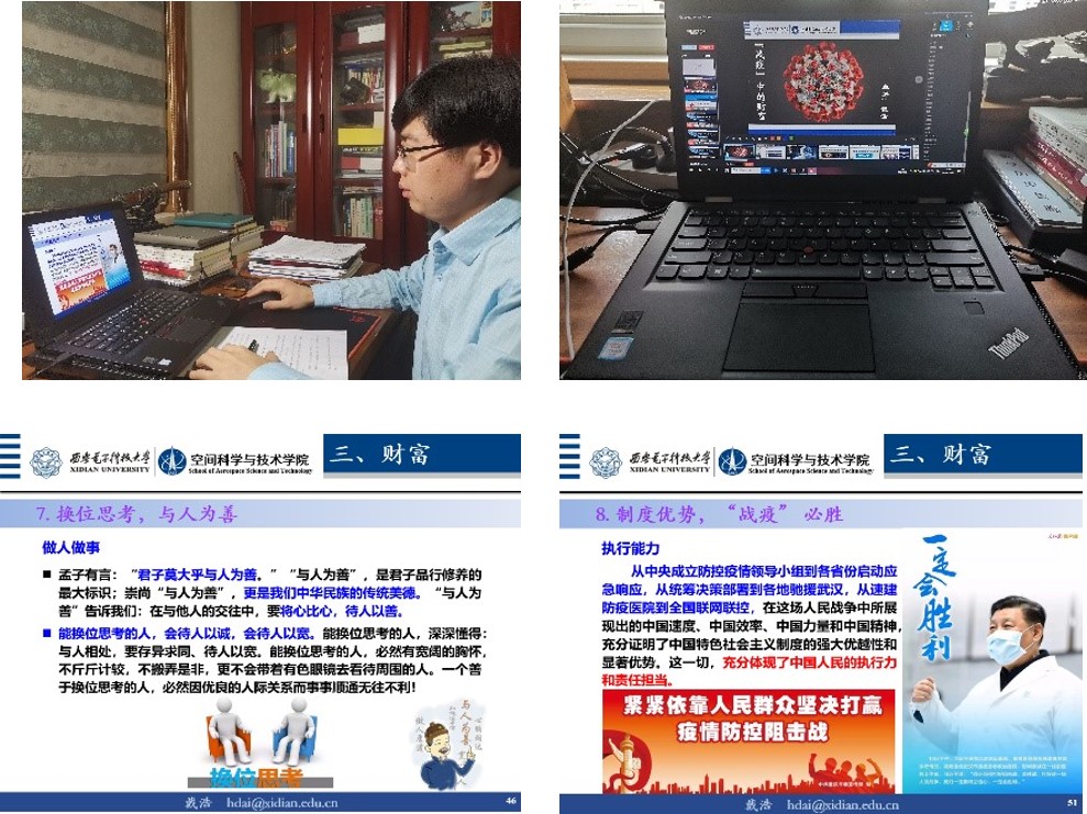 为引导员工们做西电优良校风学风的传承者,戴浩老师在随堂测验时都会让员工在诚信考试承诺书上签字,使员工认识到:“业精于勤,荒于嬉;试重于诚,毁于弊。”通过专门为员工讲解《大学》中“所谓诚其意者,毋自欺也。如恶恶臭,如好好色,此之谓自谦。故君子必慎其独也”的相关内容,戴老师身体力行地帮助员工认识到慎独在个人道德水平的修养,个人品行的操守以及个人风范中的意义。“我提倡‘诚信考场’,也就是不需要监考老师的考场。这不仅能够培养员工的诚信意识,也体现了人与人之间的互信意识,对于员工的品德和人格塑造是十分有益的。”