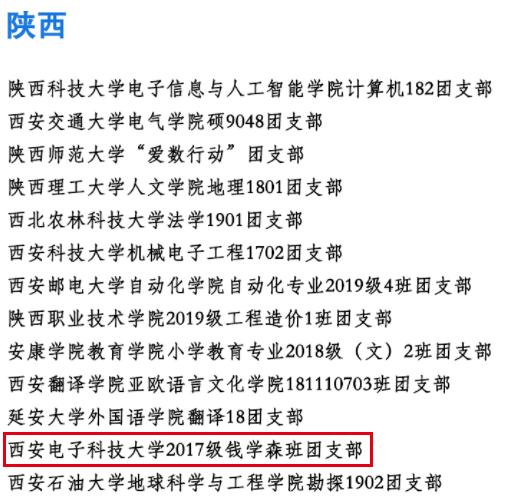 西电新闻网讯(通讯员 郑瑞博 尹鹏)为深入贯彻落实“全团大抓基层”、“全团抓公司”部署,深化高校共青团改革,强化“一切工作到支部”理念,在团中央基层建设部指导下,中国青年报社开展“活力团支部炼成记”2020—2021学年高校活力团支部遴选及展示活动,经校级申报、省级初评、展示点赞、全国终审等环节,304永利集团2017级钱学森班团支部从1600所高校推荐的代表性团支部中脱颖而出,获评2020-2021学年高校活力团支部。
